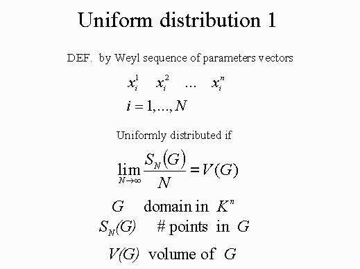 set. According to the definition given by Weyl, we can talk about Uniformly Distributed Sequences, if considering a sequence of N design variables vectors, the expression is true. G is the sub-domain in an n dimensional cube Kn; Sn of G is the number of points in G; V(G) is the volume of G.