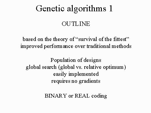 - Genetic algorithms work on a coding of the design variables not