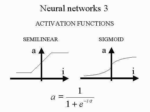 Generally we employ a sigmoid function. The expression of the activation as function of the total input of the processing unit for the sigmoid function is shown.