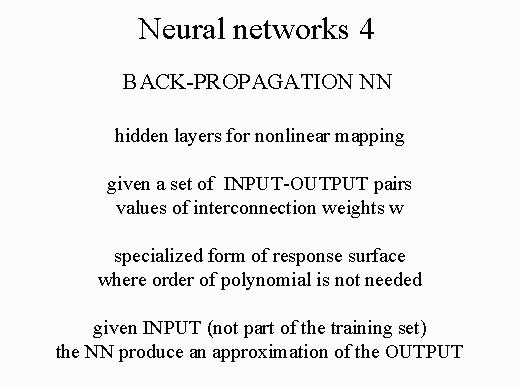 relationship between design variables and objective functions. Training procedure. Given a set of input-output the training algorithm changes the weights of the interconnections between the processing units. After the training of the network we give an input and the neural network produces an approximation of the exact output.