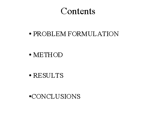 First I will deal with the formulation of the problem, then I introduce the method that we have used to solve the problem, then I will show the results and come to the conclusions.