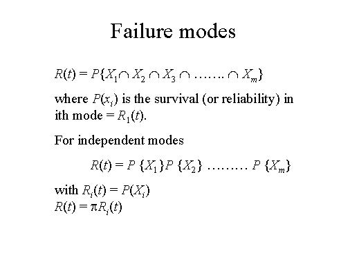 to treat the system reliability in terms of mechanisms or components failures. The formula indicates the reliability in m different failure modes, where P(X1) is the survival (or reliability) in ith mode = Ri(t) |