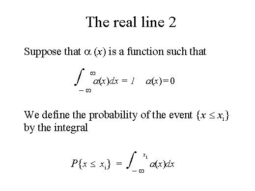 | The field contains all open and closed intervals, all points, and, in fact, every set of points on the real line that is of interest in the applications. One might wonder whether f does not include all subsets of F. Actually, it is possible to show that there exist sets of points on the real line that are not countable unions and intersections of intervals. Such sets, however, are of no interest in most applications. To complete the specification of F, it suffices to assign probabilities to the events {x £ xi}. All probabilities can then be determined from the axioms. |