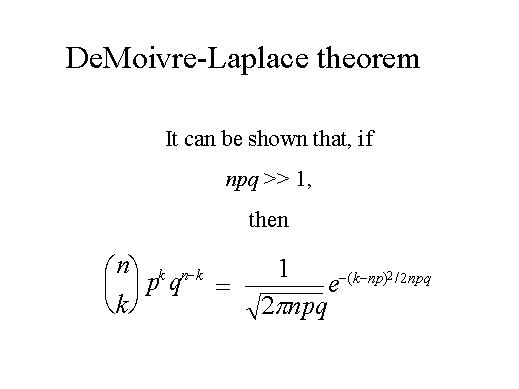 This important approximation known as the DeMoivre-Laplace theorem, can be stated as an equality in ht limit. The ratio of the two sides tends to 1 as