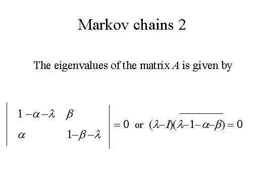 The eight vector corresponding to the unit eigenvalue is b/(a+b), a/(a+b) and as such ultimately the probability of the machines being found in working order is b/(a+b ) and the probability of its being found in a non-working state is a/(a+b). |