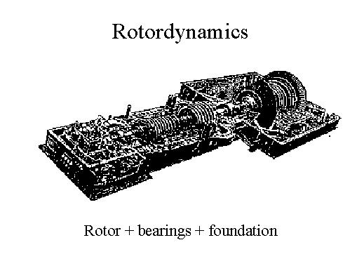 This is a sectional view of a steam turbine with high pressure sections, intermediate pressure sections and low pressure sections, with its bearings and its supporting structure. This picture is in order to remind that the system that we want to analyse from a dynamical point of view is composed by the rotor, by the bearings and also by the supporting structure. |