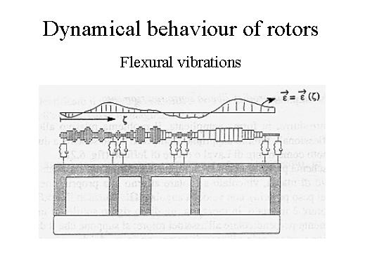 The dynamical behaviour of the rotor is mainly due to the flexural vibrations, which can be excited by several different causes. One of the most common causes is the eccentricity of the centre of gravity, which is called the unbalance of the rotor. Here we have certain amount of unbalance and certain unbalance distribution along the rotor. Generally there are also some torsional vibrations, which may interest the dynamical behaviour of such system, but in this course we are mainly interested in flexural vibrations i.e. lateral vibrations. |