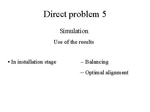 In the installation stage, the results can be used for balancing purposes and also in order to make the best alignment conditions which is needed for having the best dynamical behaviour.