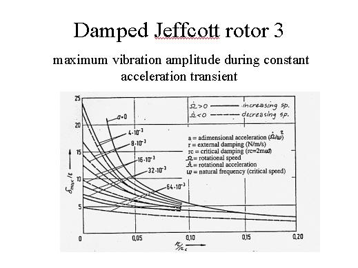 The figure shows the maximum amplitudes during transients with constant positive or negative acceleration, for different damping ratios.