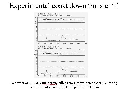 up to 300 rpm was performed in half an hour. The crossing of two critical speeds can be seen clearly. Also the phase change is very similar to the Jeffcot behaviour. |
