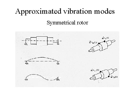 the other one in correspondence to the second critical speed. In order to balance the first critical speed two equal masses, which are in phase on the rotor can be used. Without destroying the balance quality, which was reached on the first critical speed, when the second critical speed is crossed, the rotor can be balanced by means of two equal masses which are opposite phase of the rotor. This is a concept related to the modal balancing of the rotor and a mixed procedure can be used: influence coefficient and modal analysis of the rotor. |