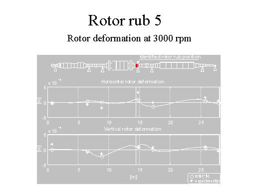| In order to have a further checking, in this chart we reported the vertical and horizontal deformation of the rotor at 3000 rpm. In the chart, the stars, which represent the experimental reference, are compared with the continuous line, which is the simulated value. It is possible to say that the trend is very close each to other. |