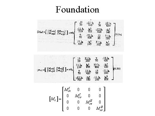 | The expression of each one of the sub-matrices forming the mass matrix for the rotor are shown in the upper part. As regards the contribution to the potential energy of the foundation, the expression of the foundation mass matri x [Mc] is simpler, due to the modal approach. |