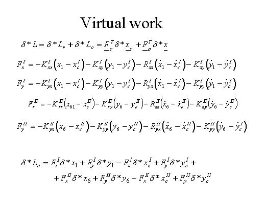 By considering now the virtual work, once again two components have to be examined: the first one is relative to the relative displacements of the rotor to the foundation and can be calculated as illustrated in this slide.