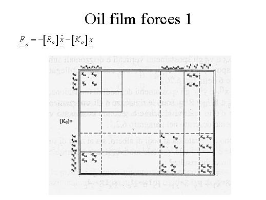The next two figures illustrate how to build the force vector due oil film. The matrix shows the structure of the oil film stiffness [