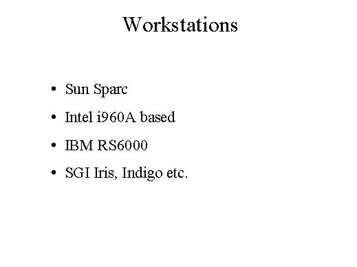 Some of the work stations viz., Sun Sparc, Intel i960A based, IBM RS6000 and SGI Iris, Indigo etc. are successful systems to establish massively parallel computing systems