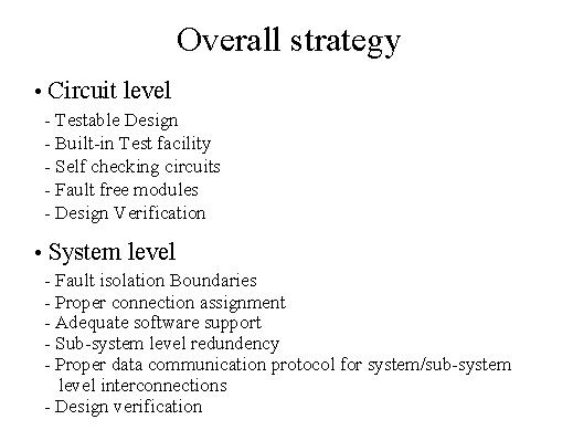 verification are the strategies followed. Subsystem level redundancy has to be established.