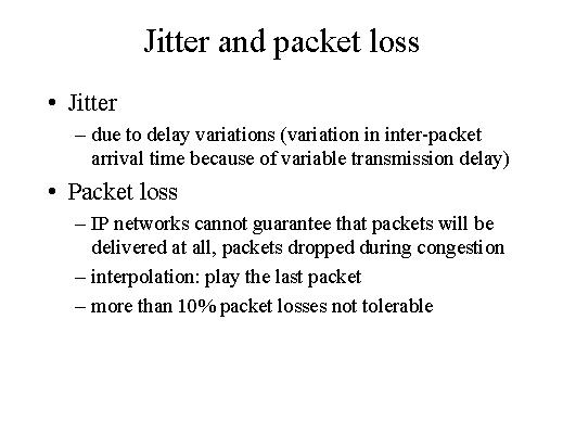 - Jitter arises due to the non-uniform delay in the packets received