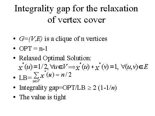 If for instance for the vertex cover we see that the integrality gap is 2, we know that the analysis we did is the best possible analysis. So we cannot get better approximation results using the same relaxation.