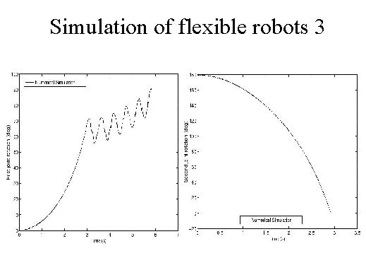 | Let's quickly look at some of the simulation results. For those parameters we simulate our equations of motion and this is what it looks like. So, this is the rotation of the first joint. This is the rotation of the second joint. And, as you can see, after about 2.9 to 3 seconds the first locking takes place at the second joint. Then it starts oscillating like this. And about 5.87 at this time the second joint will lock and this is the picture you see for the first joint. For the second joint again at around 2.9 seconds it stops and after that we cannot simulate any more. |