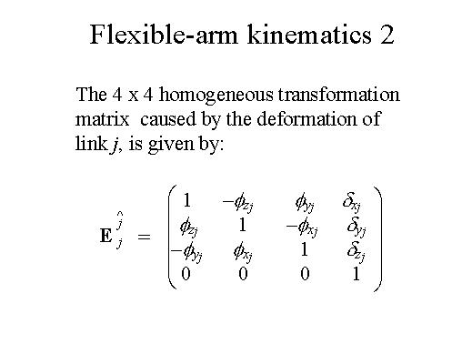 The 4 x 4 homogeneous transformation matrix from a coordinated system to the other caused by the deformation of link