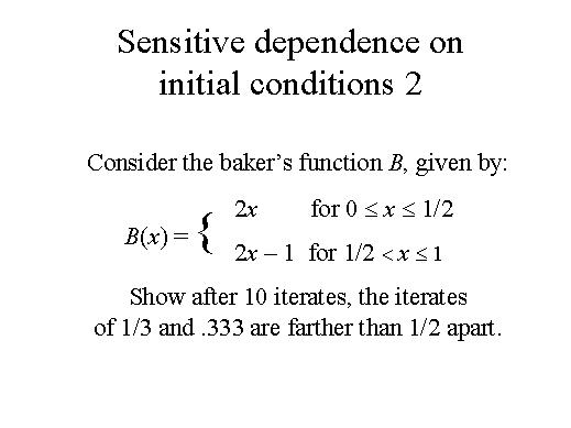 To illustrate sensitive dependence on initial conditions, we turn to the baker's function.