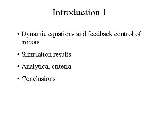 of the robot will track the input in an asymptotic manner. One of the new results which we have obtained in the recent past is to show that although the input is deterministic the output need not be predictable after a certain length of time. In other words, the output, although staying bounded, is no longer predictable. And these are what we call chaotic motions. Chaotic motions have been known in many non-linear systems, but perhaps for the first time we will show by simulation that it can be also seen in robots which are also non-linear systems. |
