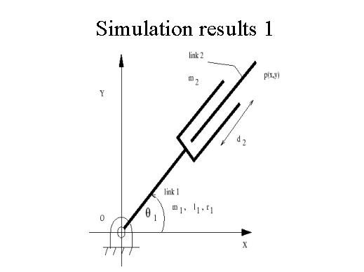 | So, let's look very quickly at one of the robots. This a robot consisting of a rotary joint and a prismatic joint or a sliding joint. One can derive the equations of motion of this robot which will be two differential equations, two second order differential equations. Notice that the non-linearity here is of the form of a product of the two variables. Here it is like a square of the two variables. |
