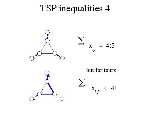 So let's try to understand what happens. So consider this little portion of the graph. We realise that the sum of the x's is 4.5. But for tours the sum of the values cannot exceed four. So we may think of cutting that solution by something of this type, by summing around this structure. |