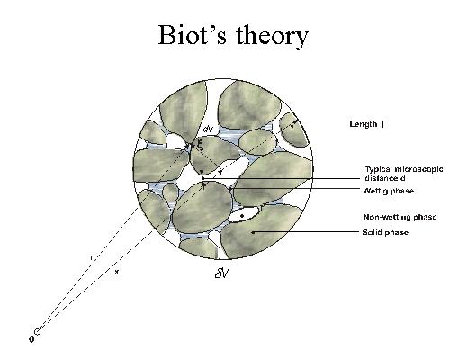 This lecture will deal with dynamic behaviour of fully and partially saturated-soil. We use for this purpose the generalised Biot' theory. Here we see a typical averaging volume (two phase flow) of a porous medium consisting of three constituents.