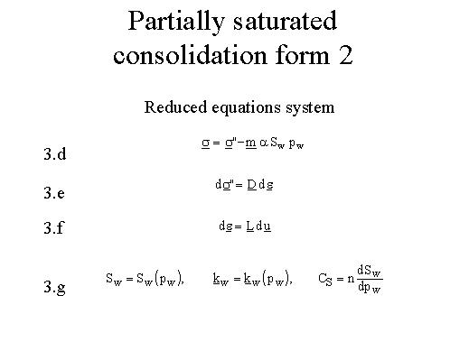 consolidation equations are obtained as follows. These equations are identical to the previous equations (1) but with terms containing "ü" omitted in equations 1.a and 1.b. In the study of the very slow phenomenon of soil consolidation, it is often desirable to follow a dynamic analysis to the subsequent consolidation behaviour. Past experiences have shown that the collapse of earthdams and foundations on occasion does not take place until a few minutes or even hours after the main shock. |