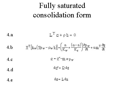 For fully saturated porous media, by the same conditions as in (3), the system of equations (3.a-3.g) can be simplified to the well known fully saturated consolidation form.