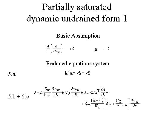 If the application of the load is so rapid or the permeability is so small that no significant drainage occurs, the equations can be simplified to dynamic undrained form by dropping seepage terms on the following assumption.