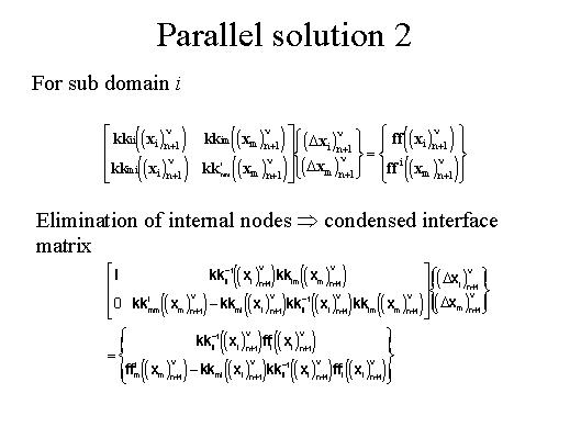 For each subdomain the internal nodes are eliminated first, which yields the condensed interface matrix.