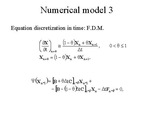For the time discretization we use the generalized mid-point rule. This is an implicit method. The time marching scheme can be written in concise form, where the matrices are formed by the component matrices of the previous system of equations.