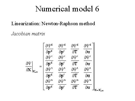 The Jacobian matrix has the following form. It is updated either for each iteration or other modified schemes may be used to achieve convergence with less computational effort.