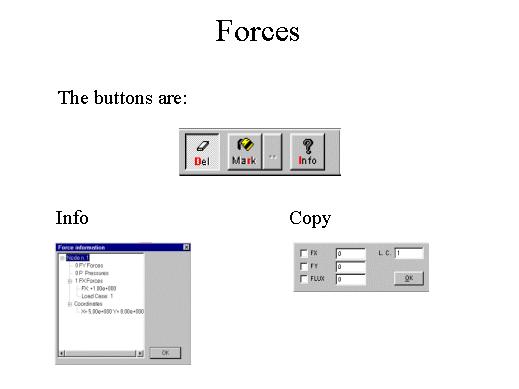 forces applied to the selected nodes.