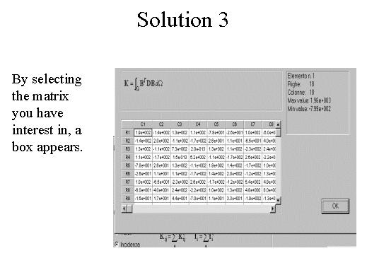 By selecting the matrix you have interest in, a box appears. In the windows one can see the elements of the matrix, its formulation and general characteristics as lines and columns numbers, maximum and minimum values.