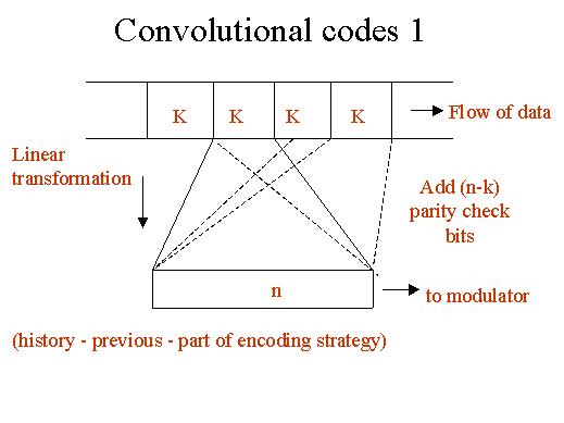 the previous blocks which went through earlier. Here also just like in the case of linear block code you add (n-k) parity check bits and here also after you get the "n" code bits you send it to the modulator, that means, basically, encoding operation includes certain amount of history so that is your encoding strategy. |