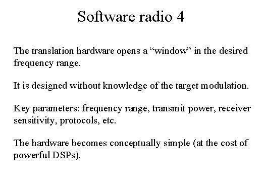 transmitted power, receiver sensitivity, protocols, etc. The hardware, if one were to have things, without the target modulation knowledge, the hardware will become conceptually very simple, but the DSPs will be very complex. |