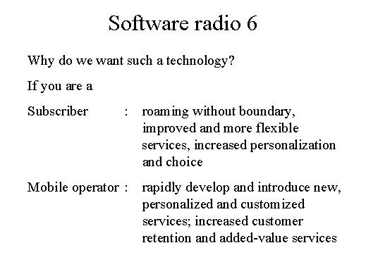need a software radio? Why do we need such a technology? If I am a subscriber,