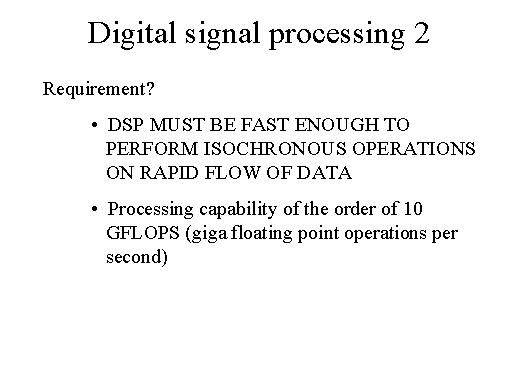 What you must have is DSP, which is functional to perform a isochronous operations on rapid flow up data. If you were to calculate the capability, you require the processing capability of the order of 10 GFLOPS per second