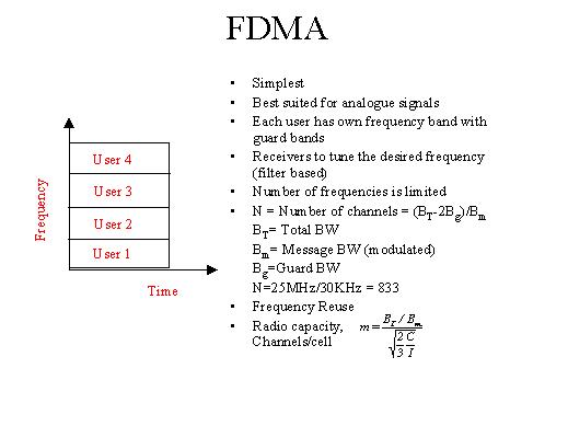 FDMA, as you can see, is where I subdivide the given frequency band into