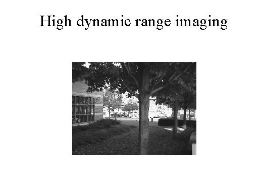 | Another thing that I described earlier was high dynamic range imaging, and again this is the picture, there is the background bright, and the foreground which is darker relatively. We would like to get sensitivity to the entire range and there are different approaches for doing it, different approaches to achieve this dynamic range. |