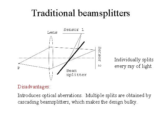 just as I mentioned earlier. This is the classical method, however it gets bulky and there are aberrations in it because each split introduces aberrations, like the pointed there. So this method that we have just recently developed does not involve those difficulties. |
