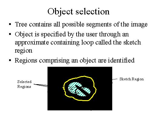picks out some of these regions in these ones to the users desire. User wants to select something for example by drawing this yellow sketch, then what the system would do is to pull out some parts of the region which come as close to the yellow sketch as possible and they supply them with the selected part of the image. |