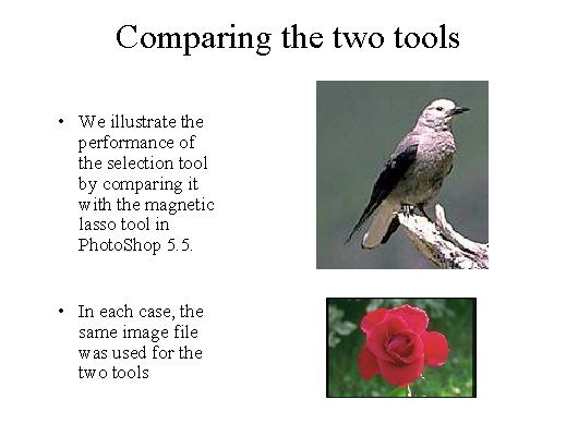 Now we are going to compare the two tools: our tool and the PhotoShop magnetic lasso tool.