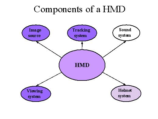 | So if you think about this, HMDs have various needs that need to be specified, for example you need to say what the image sources, which make HMDS different, you have to specify how the image, what the image is being displayed, for example in which direction you are looking through and if you know in which direction you are looking then the system can send the right image, appropriate image to the display and that monitoring is done by a tracking system then a system actually view the images that are being selected this upon what tracking system sees so you need a viewing system and then of course helmet which houses all this and sound system which we are not going to be talking about here. Actually nor are we going to be talking without helmet, we are only talking about two or three things, which are of interest here. |