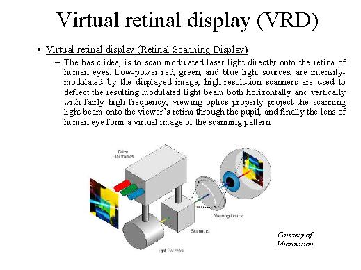Here is an example or schematic of the system that directly paints images on the retina, where these are the virtual retina displays, where you are scanning the image directly on the retina through the red-green and blue sequentially.