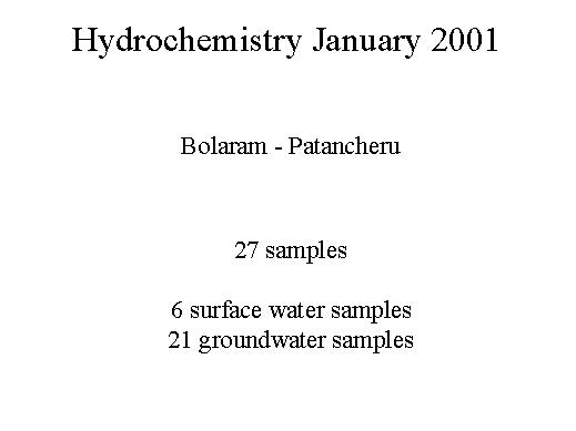 As for our investigations in Bolaram-Patancheru we took in January 2001 six surface water samples and twenty-one ground water samples.